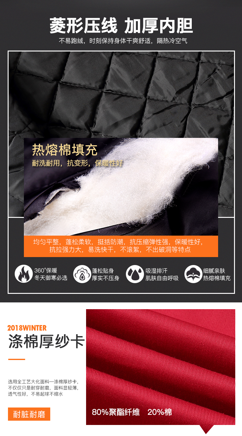 专业为企事业单位提供冬季加棉劳保服定做加工服务!不限款式,来样来图即可定制,同时为您提供现货供应,可直接刺绣企业logo,全方位满足您的需求!欢迎咨询!
