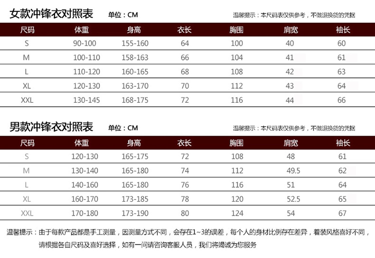 号型范围:S,M,L,XL,XXL,XXXL(型号可根据客户要求定做)