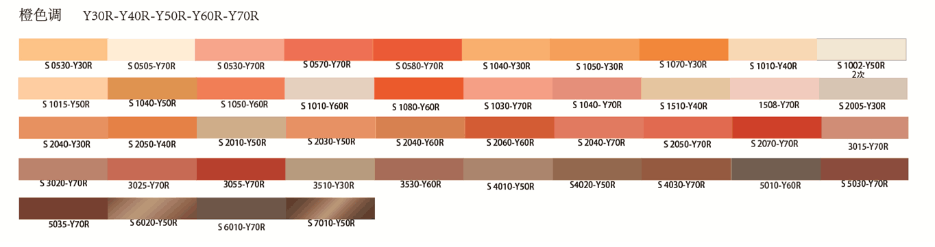 排名第三位的橙色调,共计出现了47只颜色,占据总数的14%。该色调在上海国际纺织面料展色彩趋势中占据26.7% (排名榜首),英国WGSN趋势中占据18%,ISPO趋势中占据15%,在PITTIFLATI趋势中占据17%。除了饱和度较高和明快的橙色外,含灰和暗淡的橙色,如陶橙色、木色等以及低调奢华的金橙色等也是颇受推崇。橙色调能够排名前茅的因素如下:其一,亲和性。温暖的橙色一向都是属于具有很强亲和力的颜色,它们总是能够给人甜美、幸福、华贵等的正面感受,其中含灰的橙色,如陶橙色、粉橙色、木色等还特别能够使人产生舒适感,散发着一种自然气息;其二,经济性。在全球经济疲软阶段,拥有幸福、甜蜜意味的橙色在此季趋势报告中的频繁出现也反映出预测者们对未来经济好转的一种美好向往与祝愿;其三,广泛性。十大趋势机构所做色彩预测,不仅是局限在时装上,而且也涉及了室内装修、纺织品、家居产品等领域,由此说明橙色此季深受各领域的欢迎。