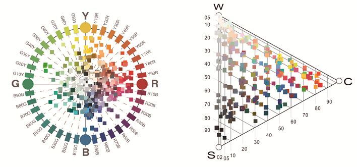 在此次选择的2016年春夏国际十个色彩趋势报告中,共计发布了334只颜色。根据这些颜色在瑞典自然色彩系统(NCS)所处色相、黑度和彩度空间位置特点及其出现频率,统计出它们于色相、明度和彩度方面的各自数据与所占比例,以此揭示出2016年春夏国际色彩总体发展趋势。基于色相是人们认识与应用色彩的重要方式,以下仅从该角度入手,结合统计数据对2016年春夏国际色彩发展趋势予以一个整体分析与基本解读: