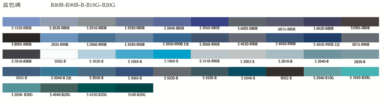 蓝色系共出现了49只,占据总比例的15%,占据次位。其中,在ISPO展会色彩趋势中,蓝色占据22%;在WGSN预测中蓝色占据7%;PITTIFLATI趋势中蓝色占据17%。需要指出的是,蓝色在2015年秋冬时装调研中也高居第二位。总体而言,此季即将流行蓝色的明度和彩度偏低,显得较为沉稳,而高彩度和高明度的蓝色则出现较少。蓝色调此季能够得到各家趋势机构重视的原因,归结如下:其一,季节性。初夏日照时间温度增加,蓝色系在色调上属于冷色系,在视觉上形成了收缩和凉爽感觉,因此适合于春夏应用;其二,文化性。蓝色历来都是欧洲人喜欢的颜色,蓝色象征着高贵和神圣,可以说任何时期,蓝色在欧美调色板上都会占据着显赫位置;其三,性别性。自女权主义的兴起后,作为颇具中性含义的蓝色,因为比暖色系的颜色显得干练爽朗和成熟稳重,由此注定了在女性主宰的时装等领域的大量应用。