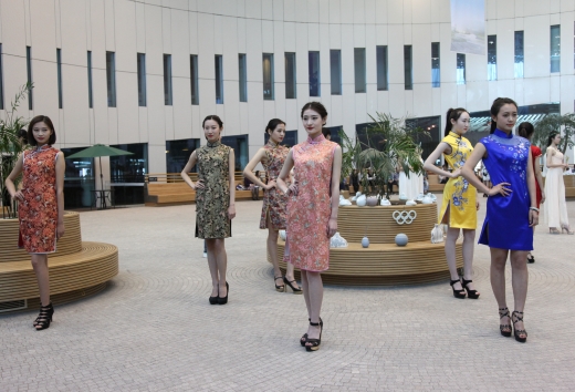 下午三点,活动以"森女与陶器"主题拉开序幕,穿着似古希腊女神的模特们手捧白瓷五环,缓缓出场,将奥林匹亚山的神圣竞技与中国陶瓷的高雅之美融合,吸人眼球。紧接着一支兼具瓷器造型之美与人体动感之美的独舞在《青花瓷》的乐曲声中,向观众展示出律动之神韵。随后,在"旗袍与陶瓷"段落中,模特们率先身穿象征着奥运五环的五色旗袍出场,随后还展示了布满中国山水墨画,碎花复古等样式新颖的旗袍,从国际接轨的奥运力量到古朴的东方色彩,再加上每位模特手中捧着的精美陶瓷,勾勒出古朴现代交相辉映的画境。
