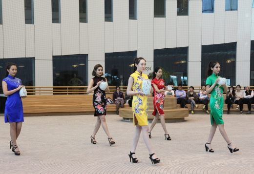 今年5月,正值萨马兰奇纪念馆开馆两周年,为了充分体现萨马兰奇先生生前对中国的关爱、进一步诠释奥林匹克所包含的自我挑战精神和公平竞争精神,该馆邀请工大艺术与服装学院师生助阵,现场展示表演系学生策划设计的传统与现代相结合的旗袍服饰及公共艺术专业师生历时数月设计并制作的系列奥运主题陶瓷作品。此次"陶似琼玖"主题展示由工大表演专业2011级毕业班同学精心策划设计,为观众奉上一场传统艺术与青春风采相结合,感受精彩奥运的文化盛宴。